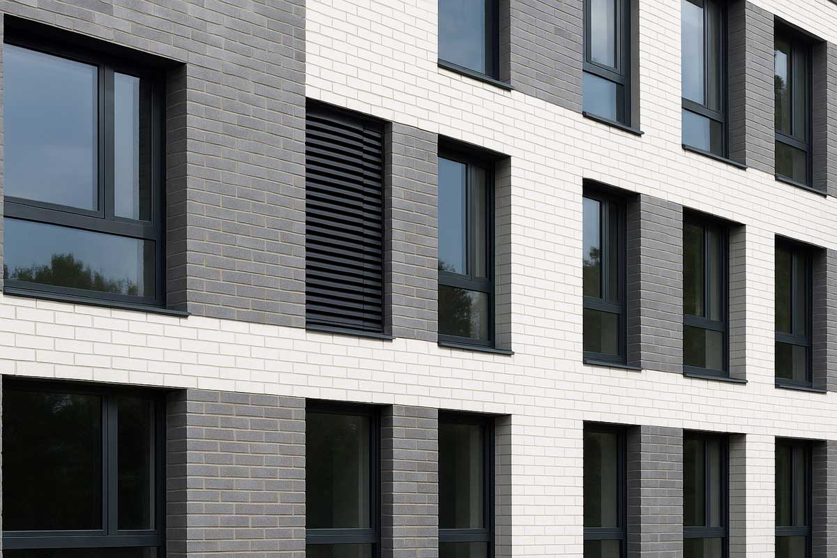 Mixing gray and white firebricks in striped patterns creates eye-catching contrasts and adds rhythm to the facade.